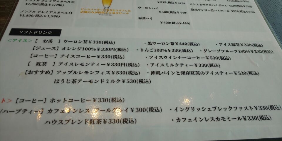 夜営業もあるから、アルコールメニューも
