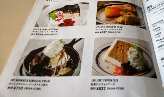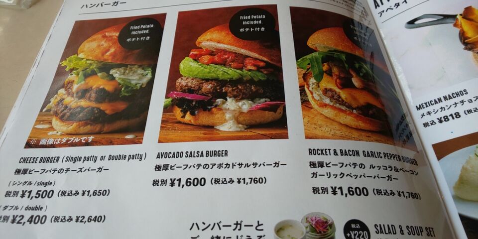 ハンバーガーのメニューやデザートも