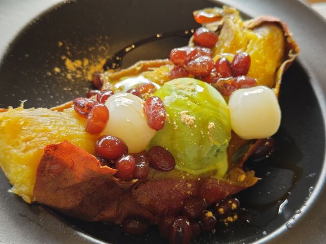 抹茶アイスは本格な苦み。お芋のとろ~んが合う。