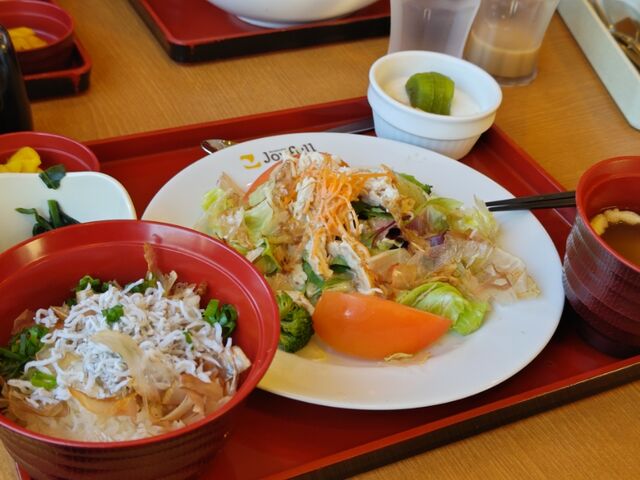 サラダと釜揚げしらす丼1032円。