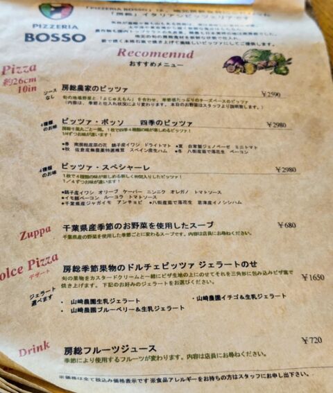 今回はピッツアボッソ。四季のピザ。
